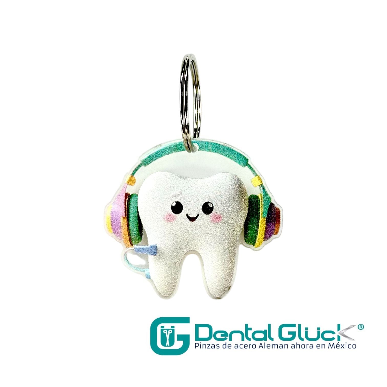 Diente con audifonos de acrilico y dimensiones de 5x5cm.