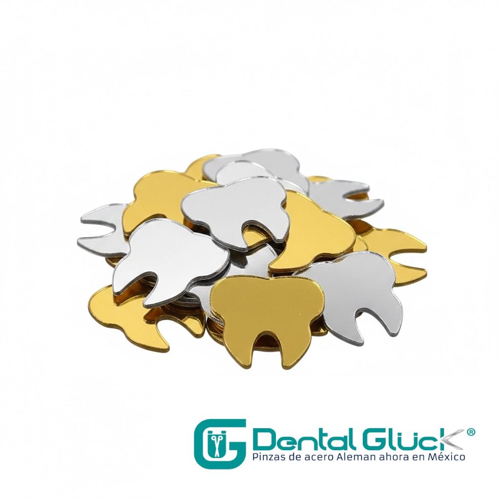 - Contenido: 10 muelas espejo en color dorado y 10 muellas espejo en color plata.
